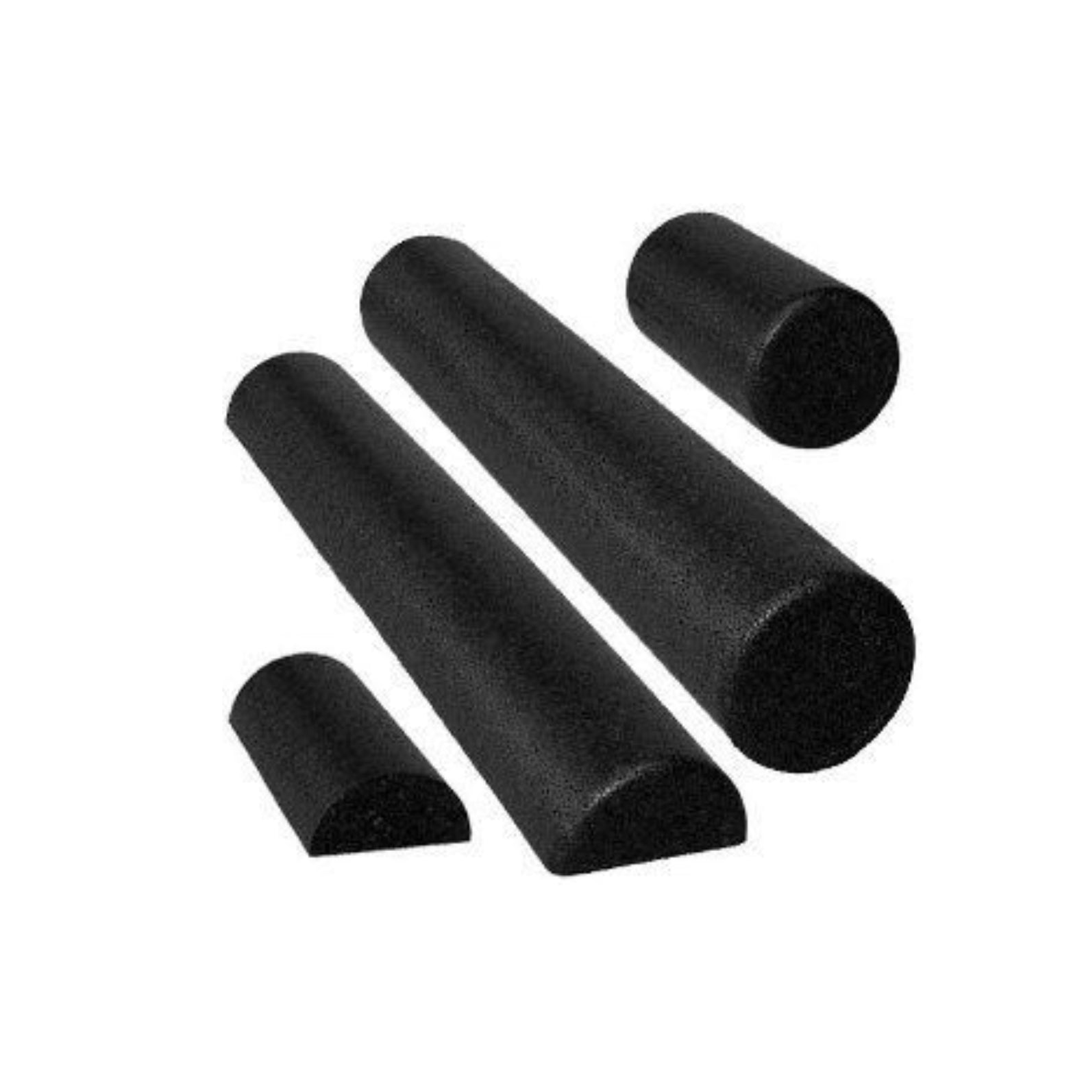Foam rollers are excellent for positioning, balance, postural and muscle re-education, spinal stabilization, body awareness, coordination, and strength training. Round rollers support progressive exercises, allowing users to advance from smaller to larger diameters for increased difficulty. Half-round rollers are particularly useful for ankle stretching and knee rehabilitation. Available in 36", 18", and 12" lengths with round or half-round profiles, these black molded composite foam rollers are firmer and more durable than polyethylene, making them suitable for both large adults and active children.