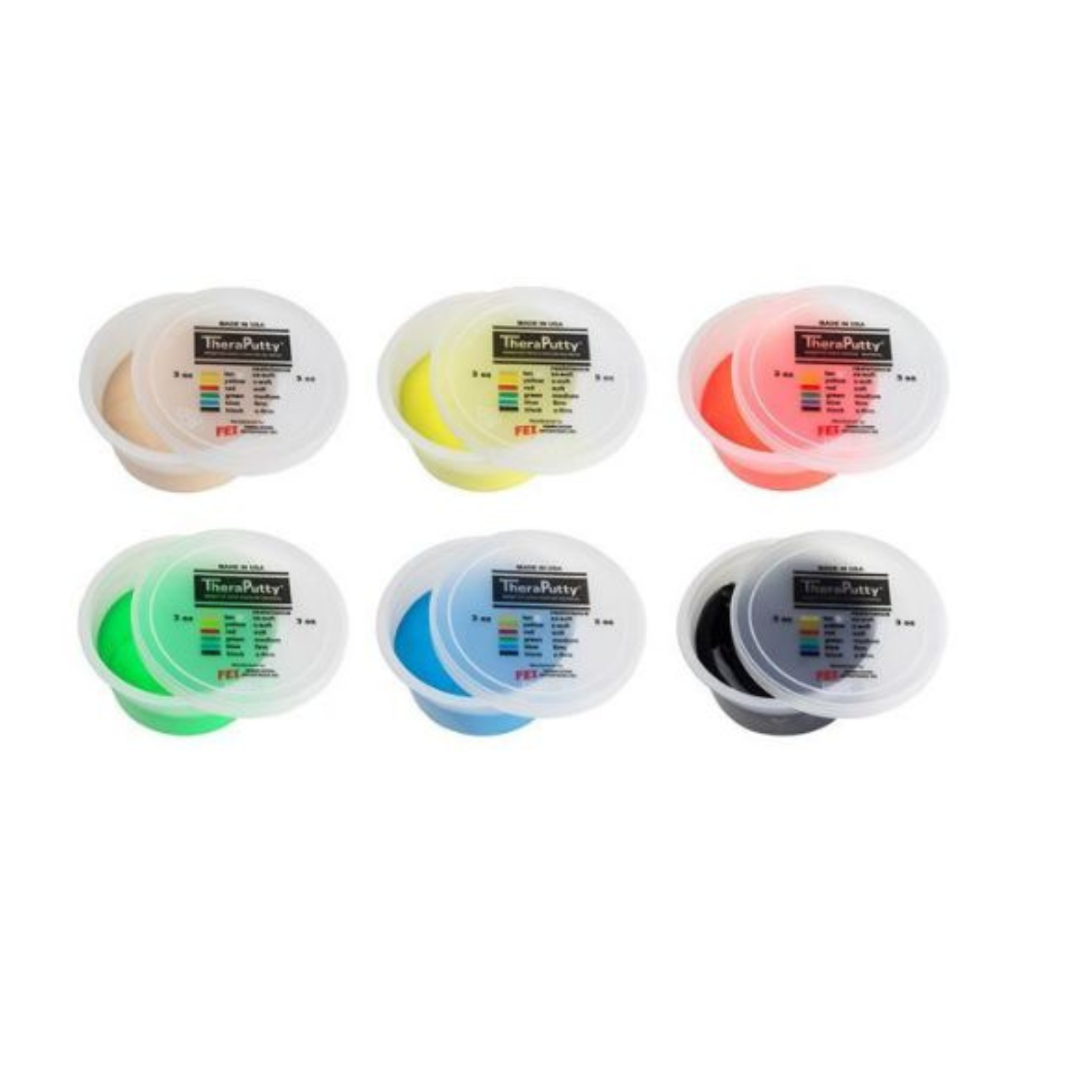 Each of the six color-coded putties features industry standard resistances, with a progressive firmness ranging from xx-soft to x-firm.