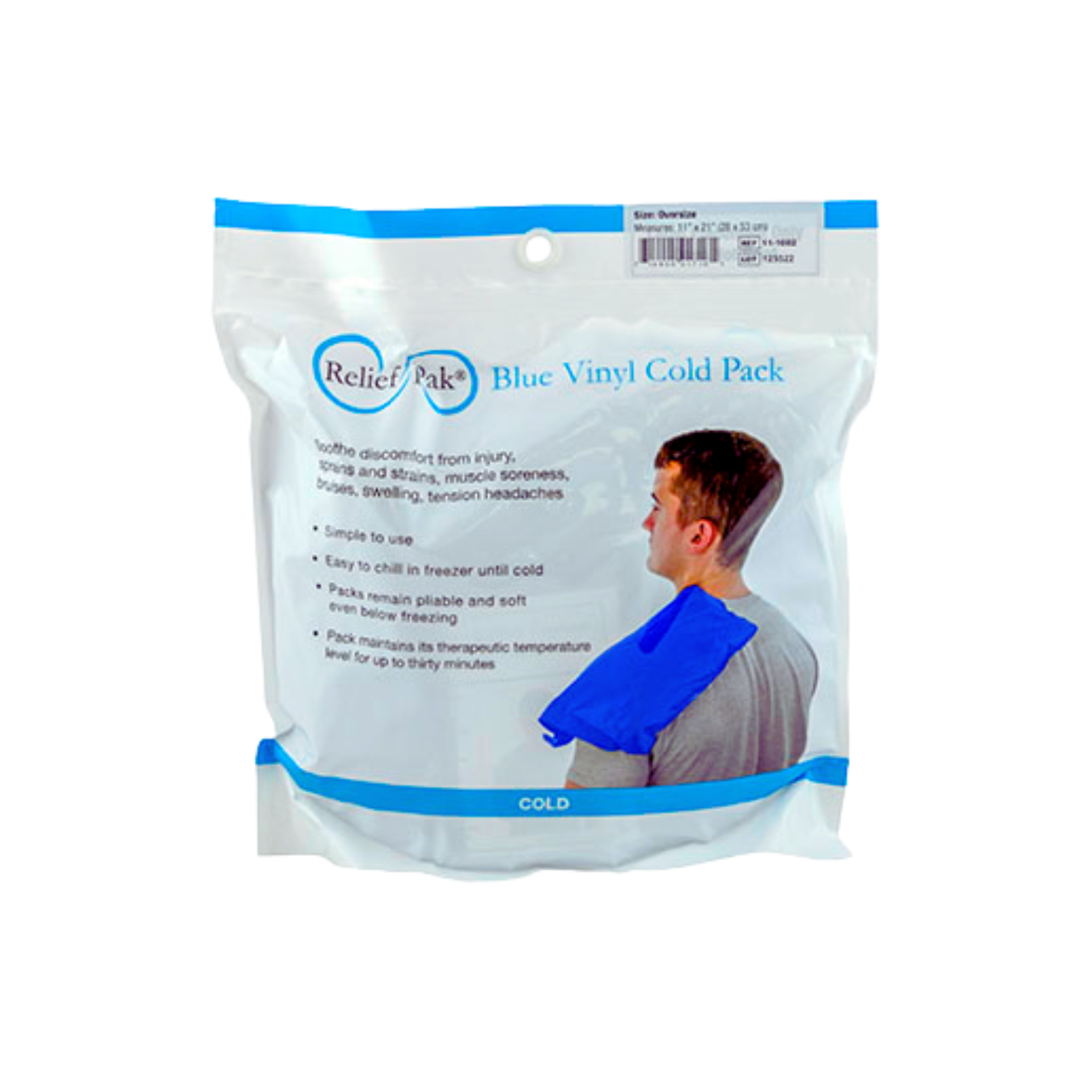 The Relief Pak re-usable cold pack offers an effective method of applying cold therapy to a localized area. Place pack in a chilling unit or freezer. Packs remain pliable and soft even below freezing. Packs remain pliable and soft even below freezing. Pack maintains its therapeutic temperature level for up to thirty minutes. Institutional grade packs are made of durable heavy-duty vinyl exterior and bentonite clay interior. Chilled pack should be wrapped in towel before applying to treatment area.
