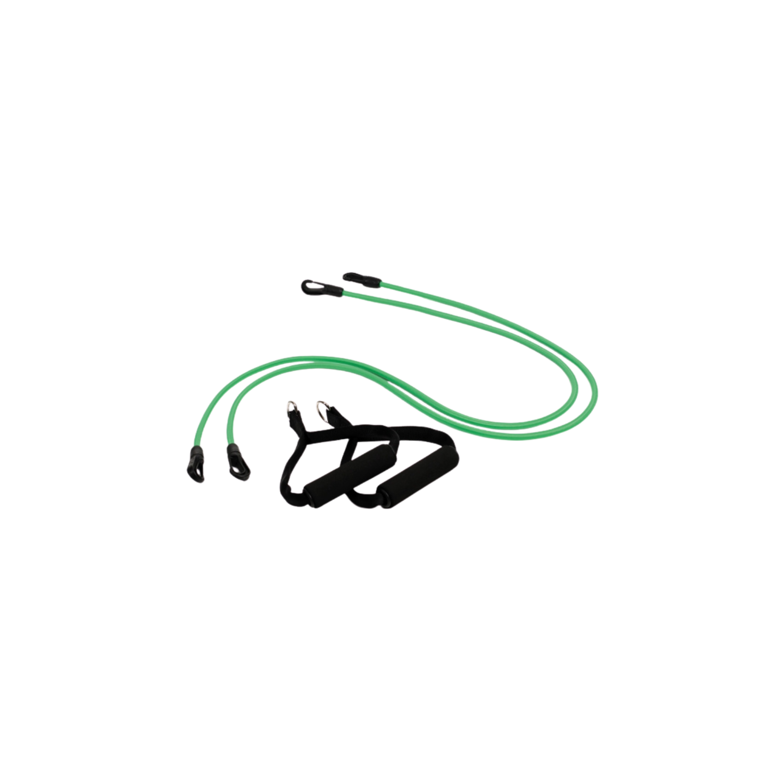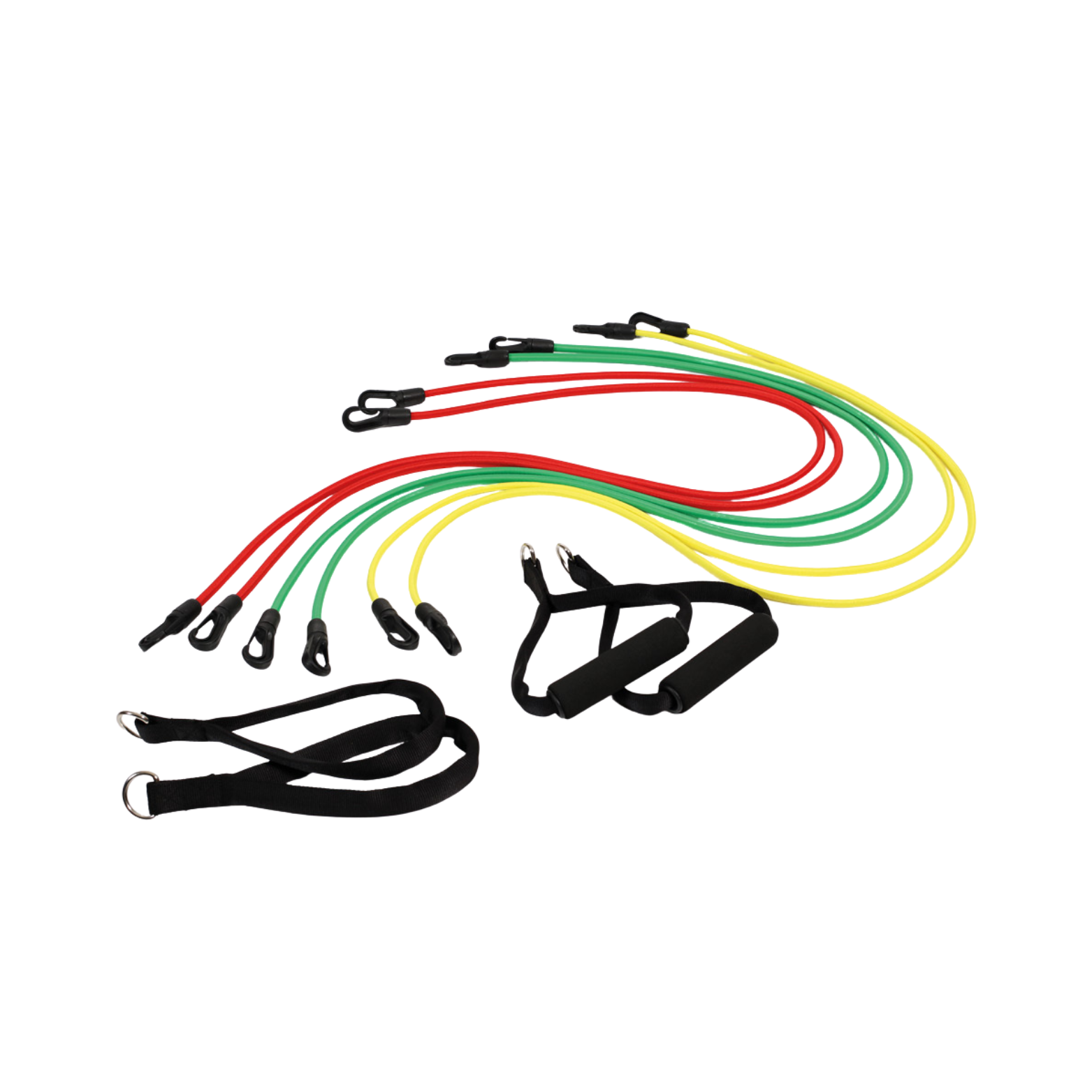 The Theragym Pro Set consists of special elastic tubing with handles. Comes in three different resistances - light, medium, and heavy.